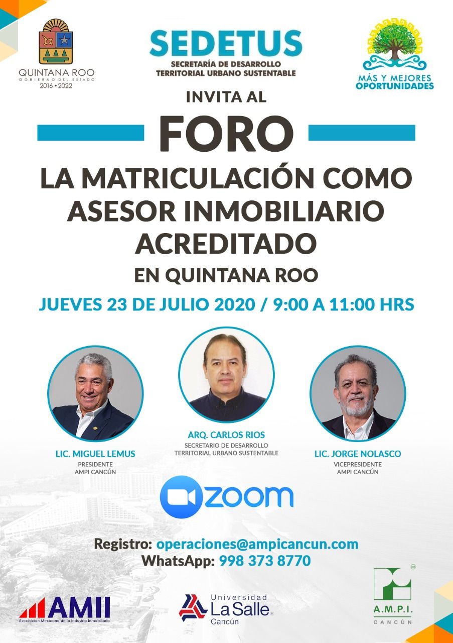 El foro es Abierto al público en general realiza tu registro enviando un correo a operaciones@ampicancun.com o un mensaje de whatsapp al 998 373 87 70, con tu nombre completo y correo electrónico.