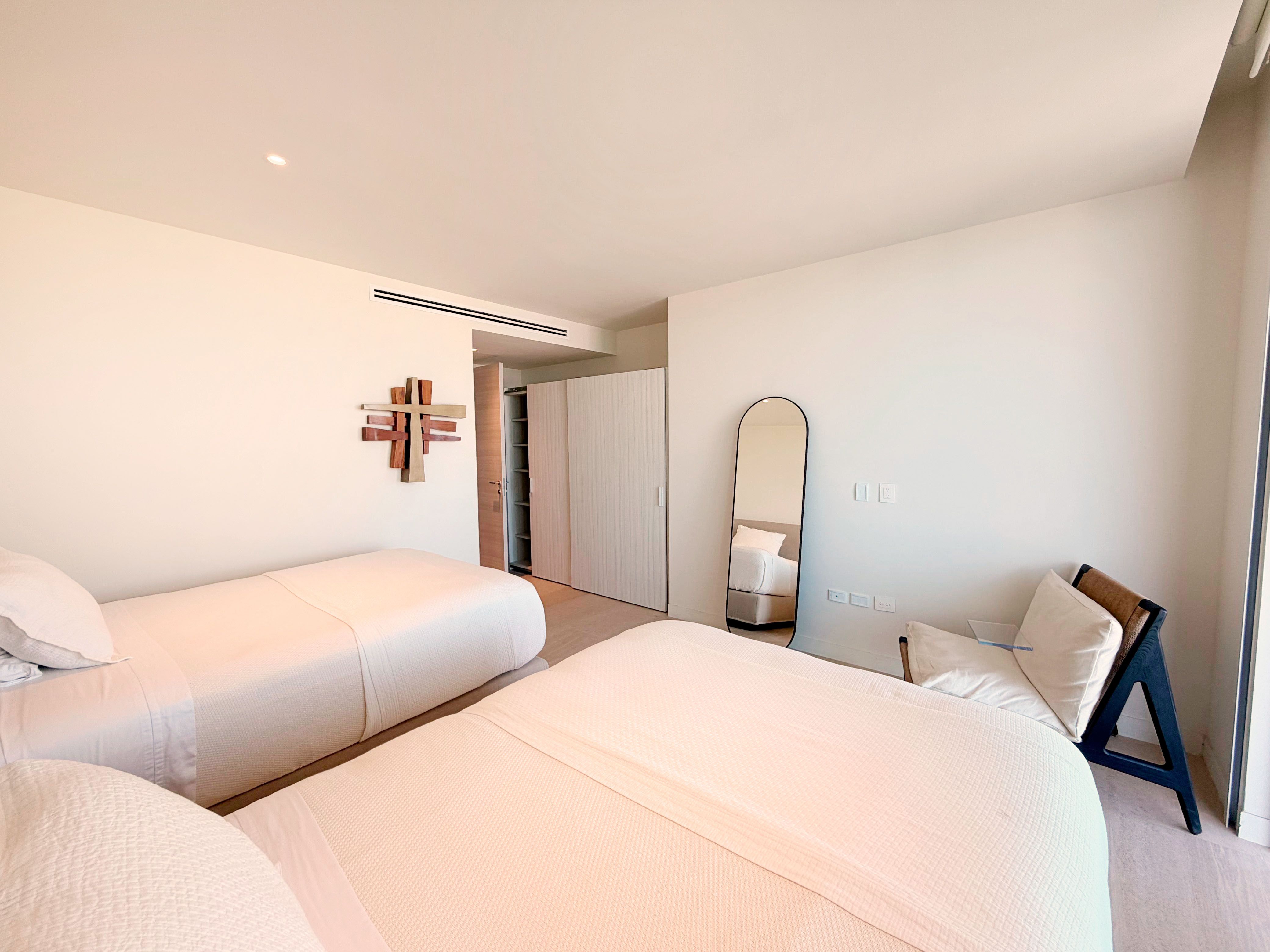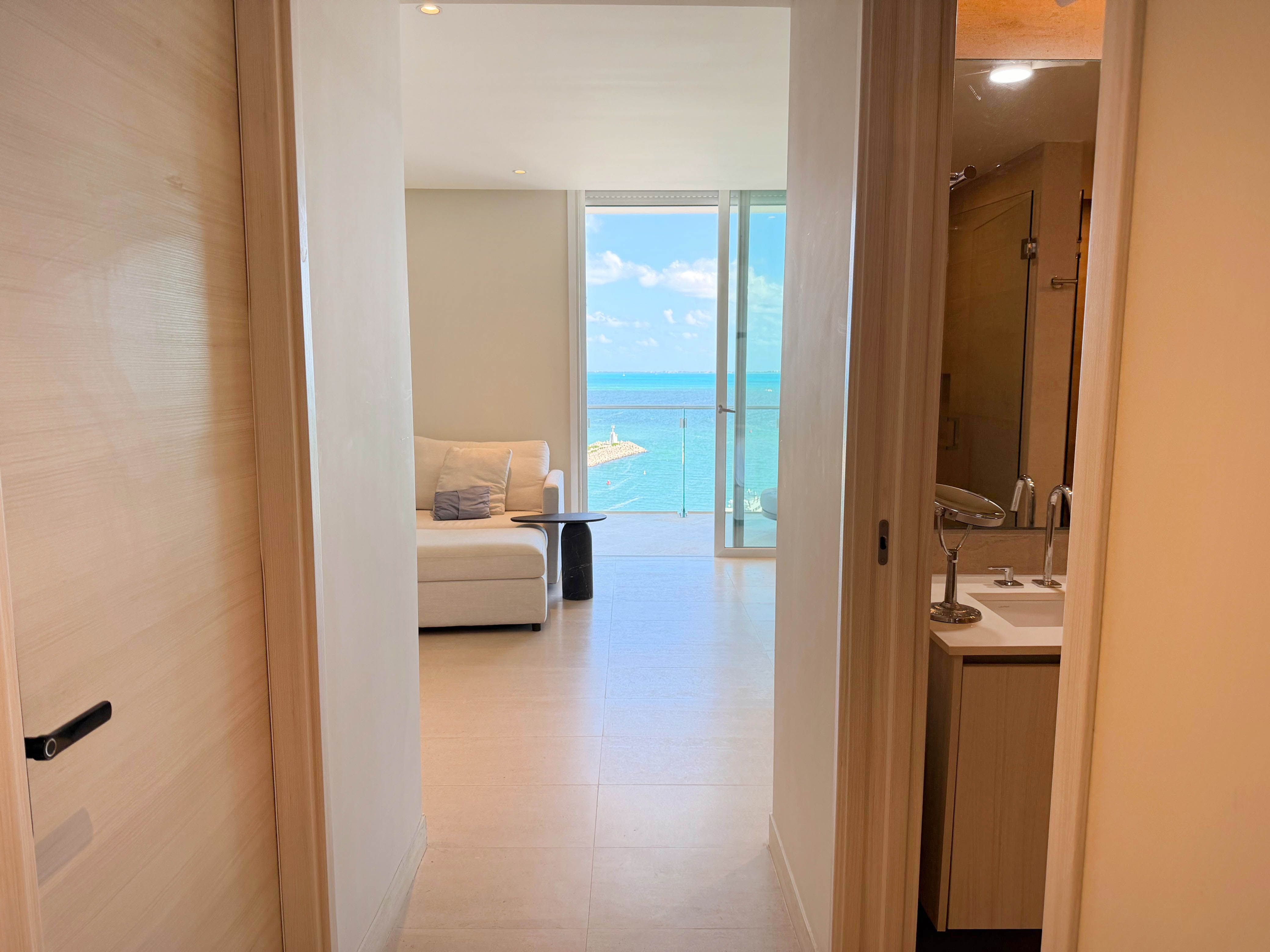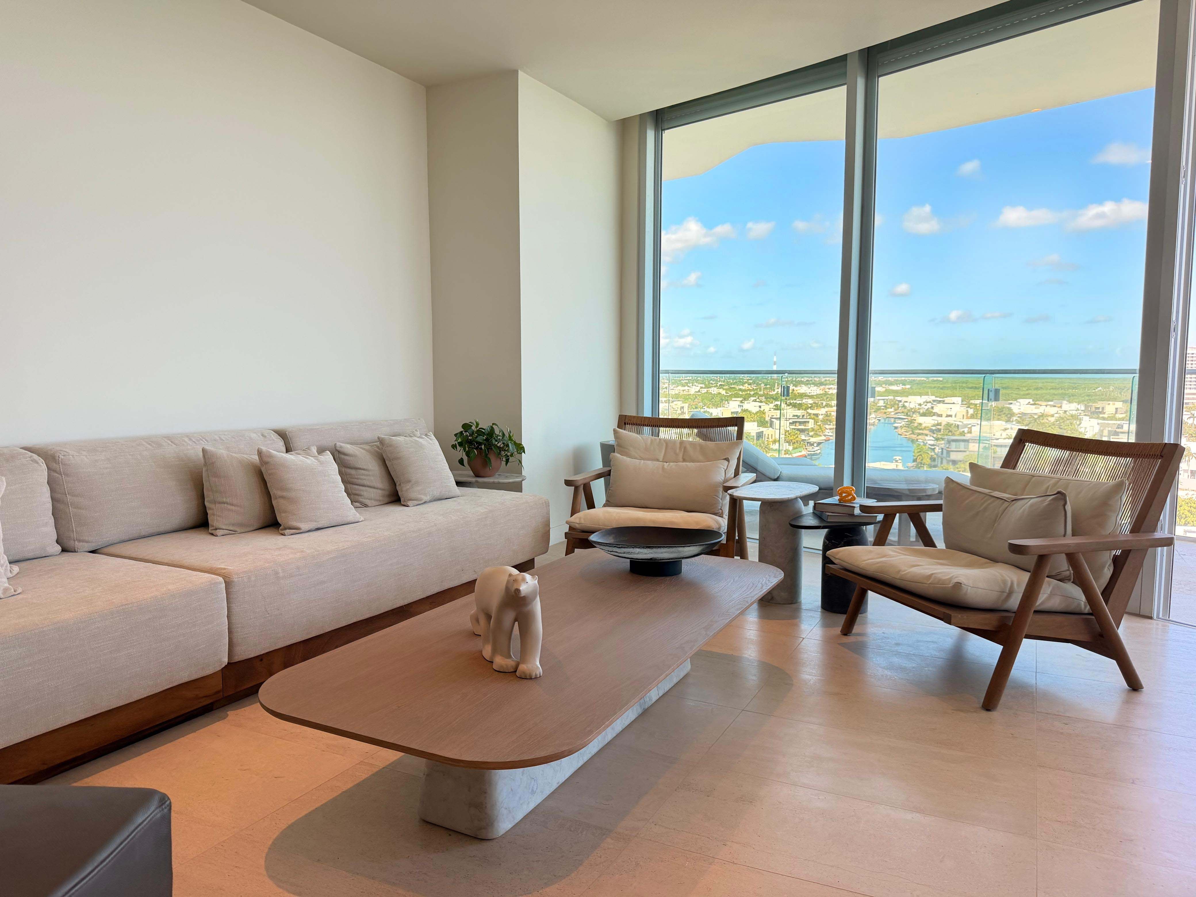 Ubicado en el piso 10 de la exclusiva torre SLS Harbour, dentro del prestigioso complejo Puerto Cancún, este espectacular departamento amueblado de 291 m² redefine el concepto de lujo frente al mar. Desde sus amplios ventanales y terrazas se aprecian vistas panorámicas incomparables al Mar Caribe, donde cada amanecer y atardecer se convierte en un espectáculo natural digno de admirar. Su diseño contemporáneo combina elegancia, confort y funcionalidad en cada detalle, con una decoración de autor, mobiliario de alta gama y una cocina completamente equipada. Cuenta con tres recámaras más un estudio o cuarto de TV que puede adaptarse como cuarta habitación, cuatro baños completos, cuarto de servicio y de lavado, además de dos espacios de estacionamiento techado. Cada rincón fue diseñado para ofrecer bienestar, privacidad y una conexión constante con el entorno marino. La torre SLS Harbour es sinónimo de sofisticación y servicio de clase mundial, ofreciendo amenidades de primer nivel como dos albercas, spa, gimnasio, cine, ludoteca, coworking, valet parking y acceso directo a la playa. Además, sus residentes disfrutan de los privilegios del exclusivo club de NovoCancún, con cinco albercas adicionales, gimnasio y restaurante frente al mar.