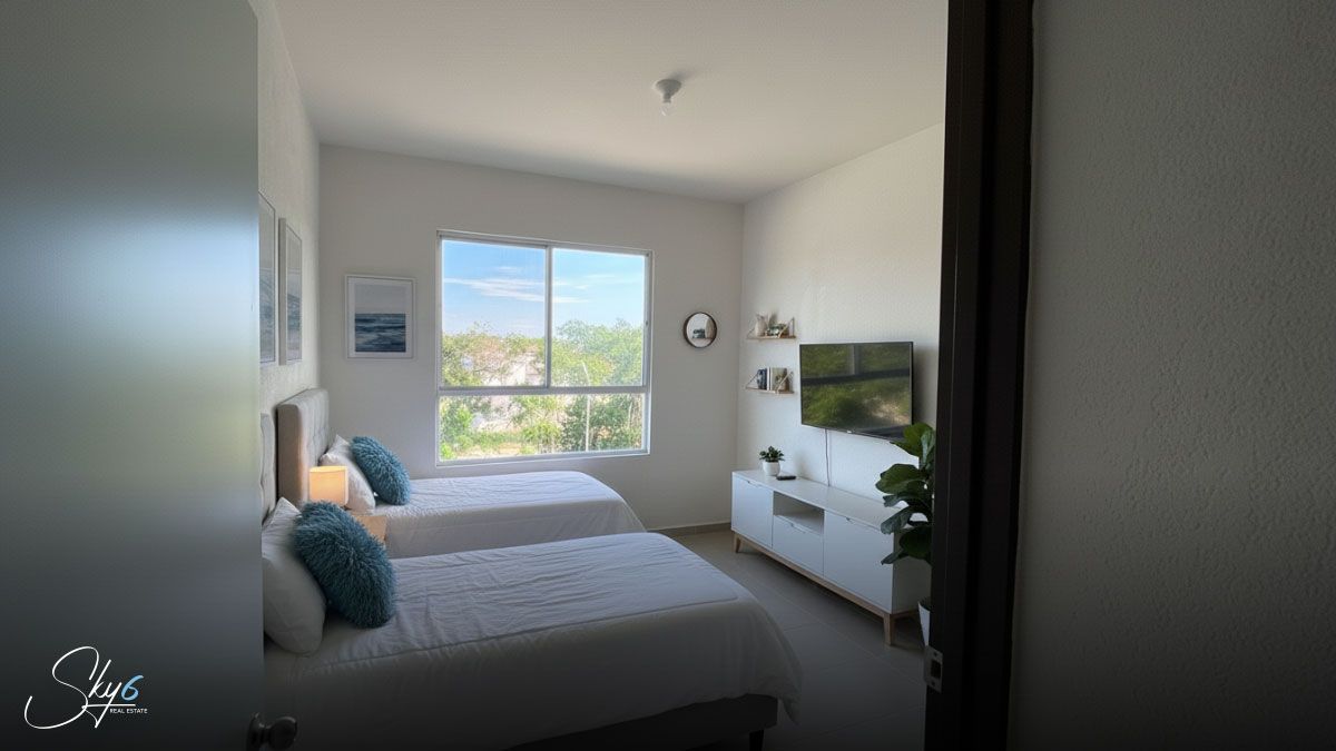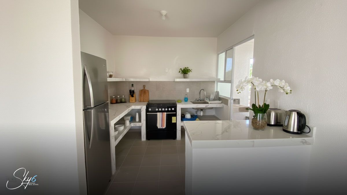 Por otro lado, la funcionalidad es una prioridad en este Depto en Marina Turquesa. La cocina ya viene equipada con estufa, lista para que prepares tus platillos favoritos desde el primer día. Para asegurar tu confort climático, la propiedad incluye tres aires acondicionados estratégicamente instalados, garantizando un ambiente fresco incluso en los días más calurosos. Asimismo, el departamento cuenta con un calentador de agua eficiente y un espacio de estacionamiento privado para tu total tranquilidad.