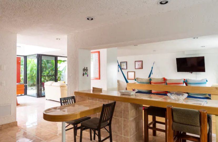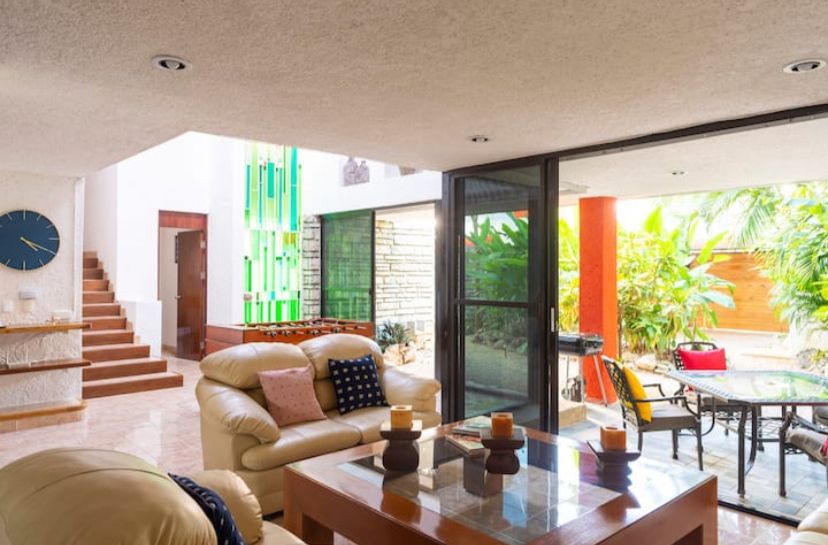 Hermosa y amplia casa estilo contemporaneo ubicada estrategicamente en Cancún (muy cercana a Puerto Cancun) y al Km Cero (entrada a Zona Hotelera). Dos plantas, con 3 habitaciones y posibilidad de recibir comodamente hasta 8 personas, con 3 baños completos y un medio baño. Para los inversionistas tiene un magnifico historial de rentas vacacionales, familias grandes con intención de vivir en Cancún encontraran esta propiedad muy atractiva. Su diseño le da la versatilidad inclusive para funcionar como un corporativo con oficinas y areas comunes amplias. Cocina y puertas en finas maderas tropicales, garage techado con porton de cierre automatizado para dos o tres vehiculos grandes. Cuarto de servicio convertido en una cómoda habitacion adicional con baño completo. Un espacio en el patio frontal con un área lo suficientemente grande que podria ser destinado para instalar o construir una piscina que cumpla con los requisitos de las mejores y al gusto del nuevo propietario y su familia (existe un diseño y respectivos renders que ayudarian a visualizar el concepto arquitectónico de la misma). Los muebles no estan incluidos en el precio pero si desea el comprador que algunos de ellos permanezcan en la casa hay disposición de parte de la propietaria a incluirlos en el acuerdo.