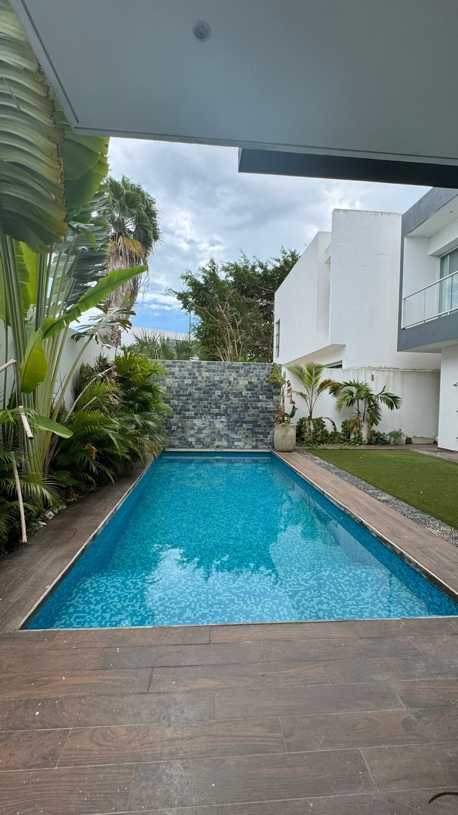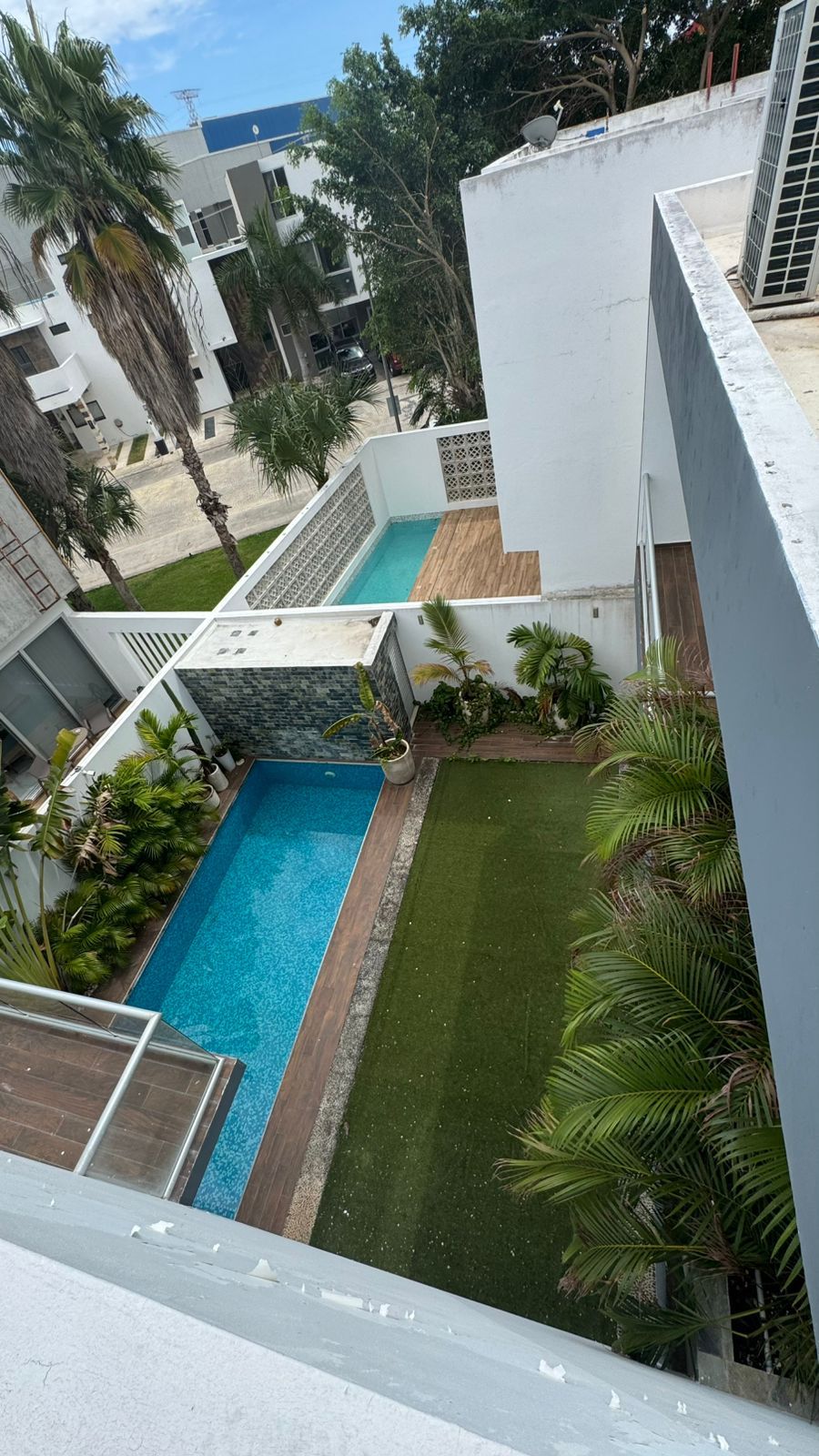 Es una Casa de 469.46 mt construcción y 374.38 mt de Terreno es una Casa muy amplia con armoniosos espacios y luz natural que permiten se vea mas amplia aun y acogedora, cuenta con 3 estacionamientos privados y techados, cámaras de seguridad, planta de luz , paneles solares con pasillo lateral y bodega , alberca y jardín , un medio baño en la parte exterior de la Casa , cocina abierta, equipada con horno y cafetera teka también puede cerrar la puerta y la cocina se convierte en área cerrada, sala y comedor con vista a la alberca, sala de cinema con baño completo y recibidor con barandal de cristal , en planta alta cuenta con 3 recamaras cada una de ellas con baño AA, mosquiteros cortinas black out , pequeña área de lavado la recamara principal cuenta con doble lavabo y walk in closet , en el 3 er piso cuenta con área de lavado, una habitación con baño completo . El residencial ofrece Casa club, gimnasio, jardines, albercas 2 ,área infantil, seguridad 24/7 cerca de escuelas , centros comerciales , a unos minutos de la parada del tren maya y el aeropuerto.