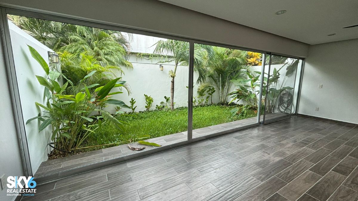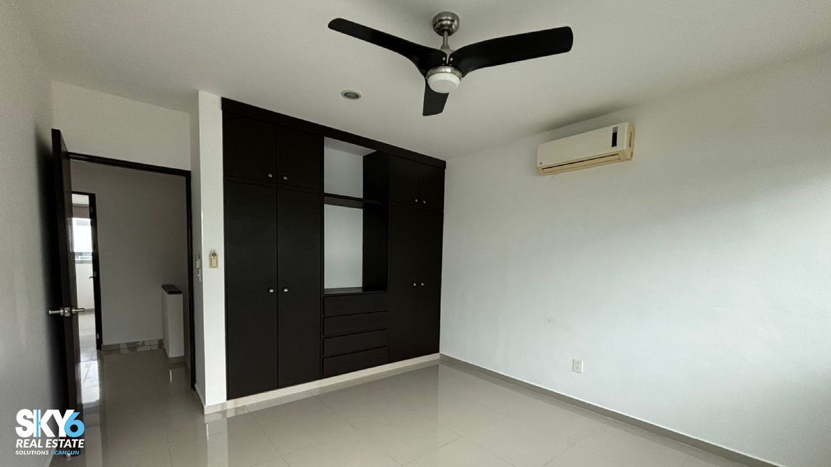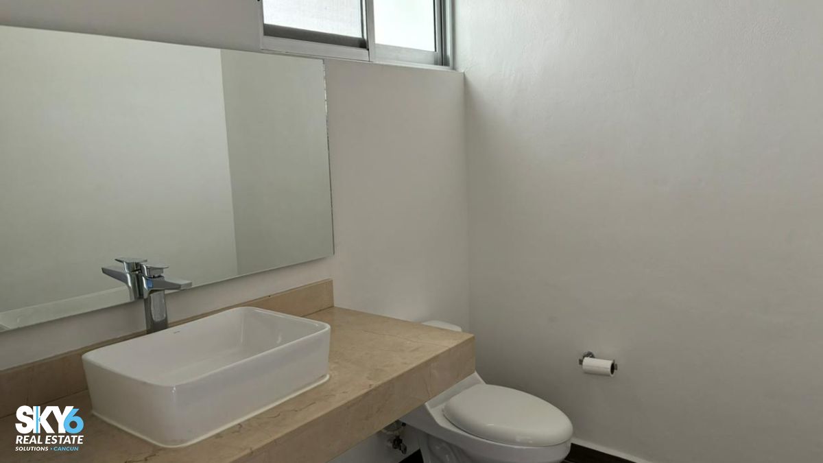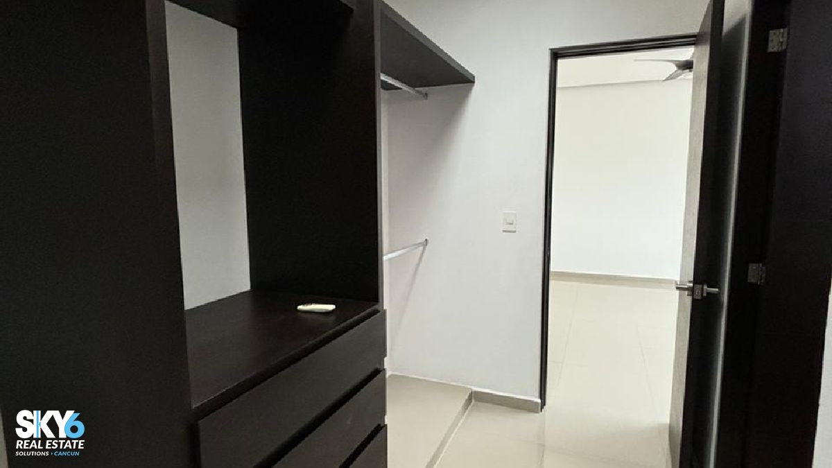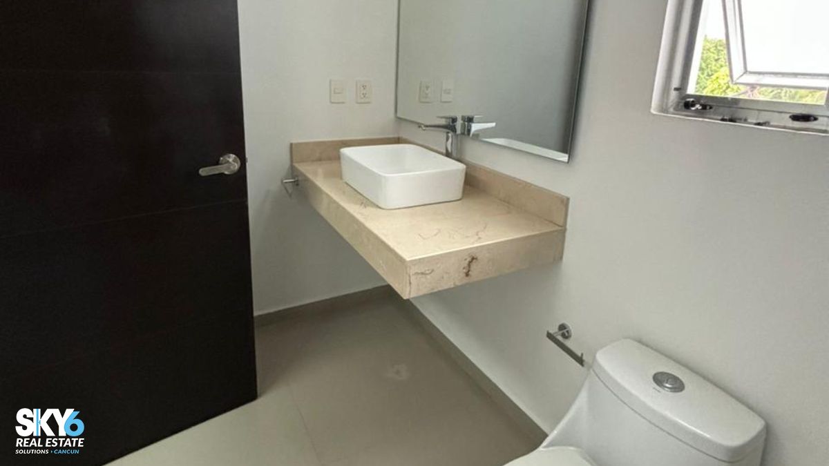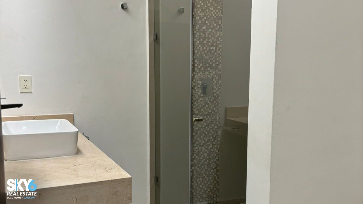 La casa en Residencial Palmaris se distingue por su diseño funcional y elegante, ofreciendo una cocina integral equipada que facilita la preparación de tus comidas diarias con comodidad. Además, incluye un cuarto de servicio, lo que añade un toque de conveniencia para el día a día. La propiedad también cuenta con aires acondicionados y ventiladores, asegurando un ambiente fresco y agradable en todo momento, perfecto para el clima de Cancún.