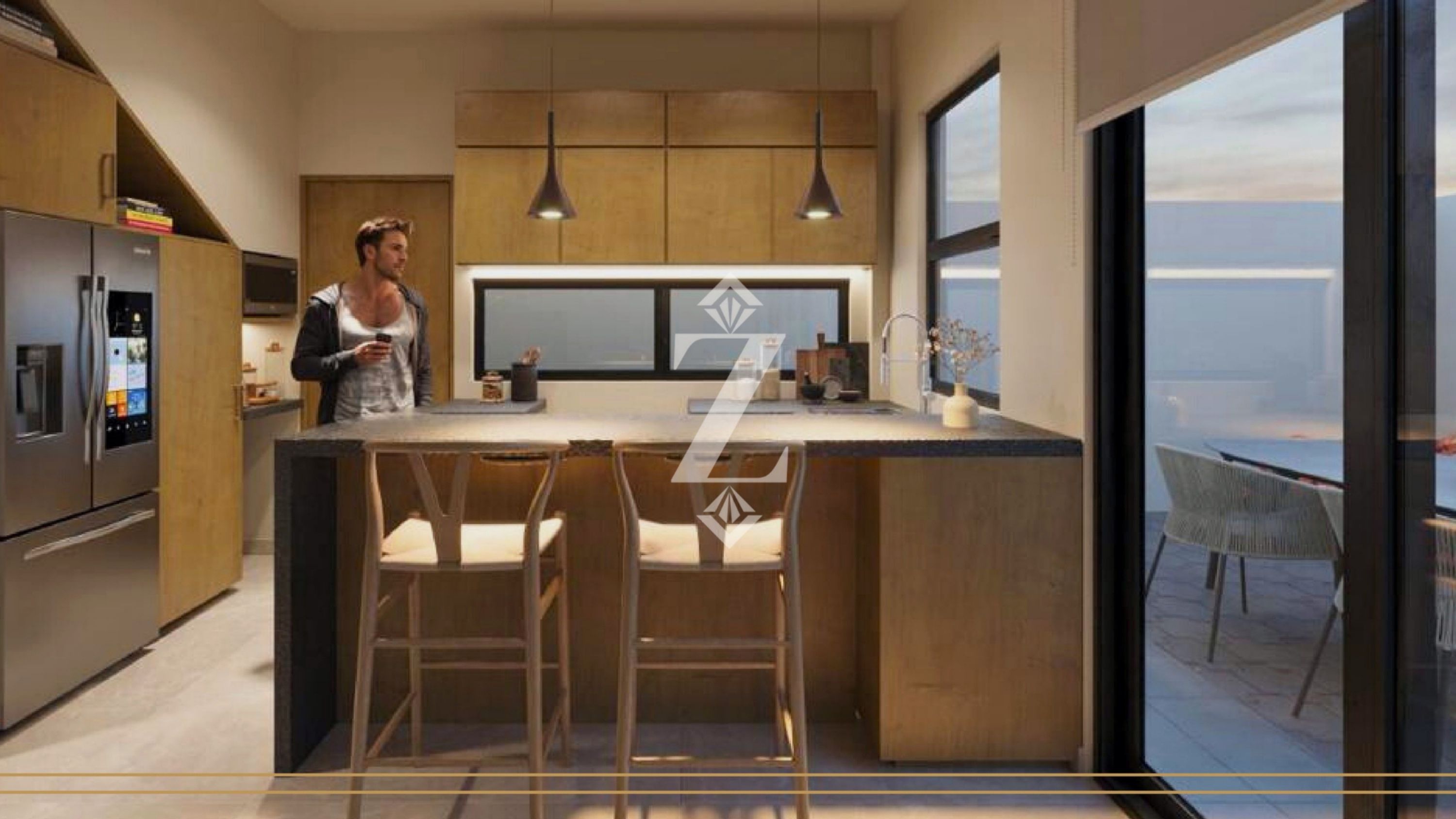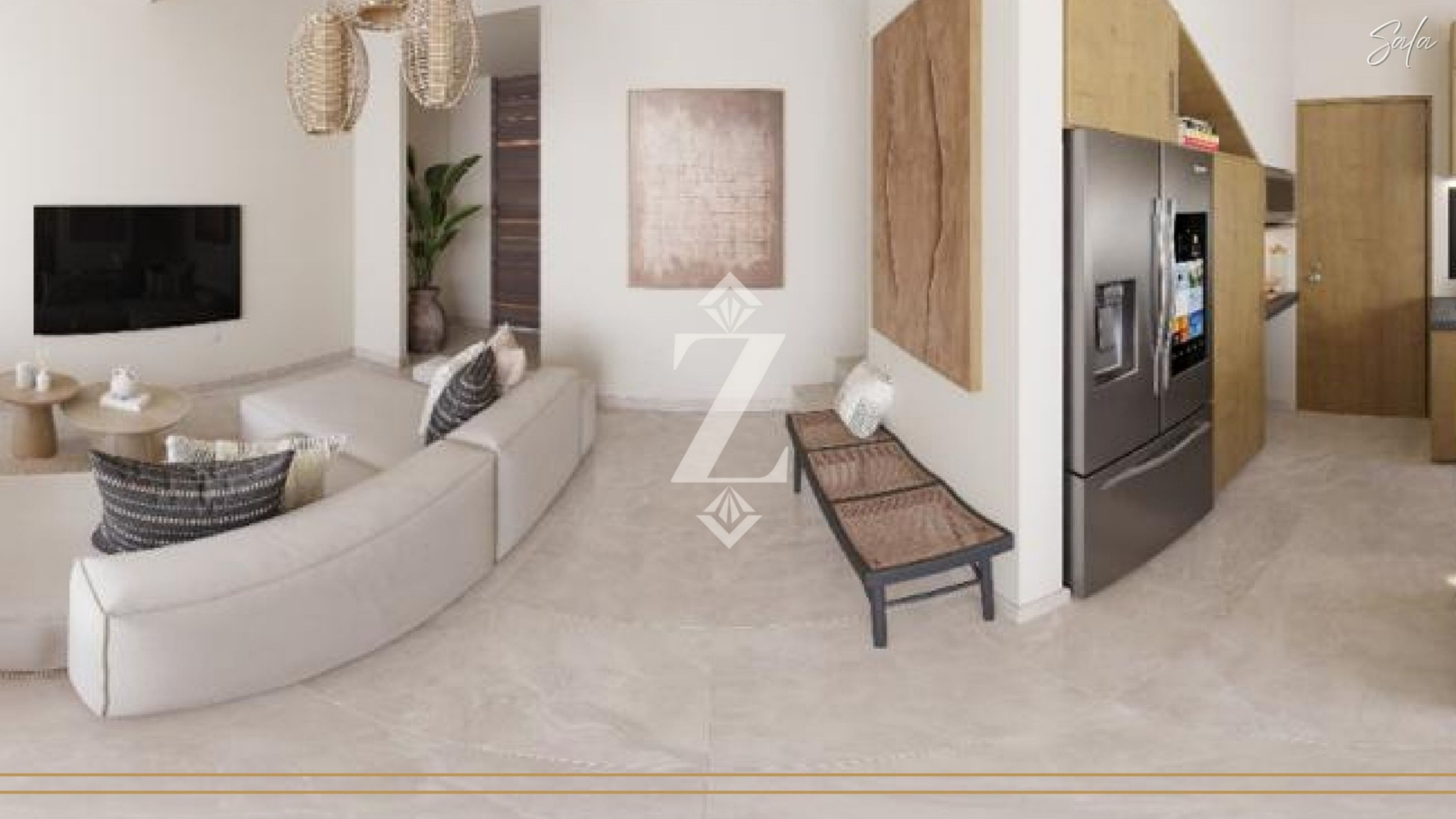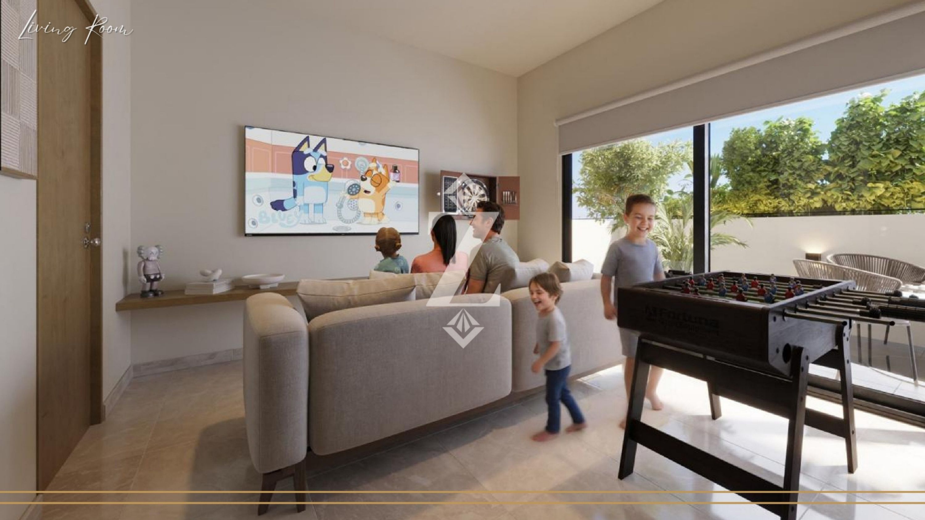 ? En la planta alta también se encuentra un living room que ofrece un espacio adicional para el esparcimiento, con una terraza que permite disfrutar de vistas panorámicas del residencial.