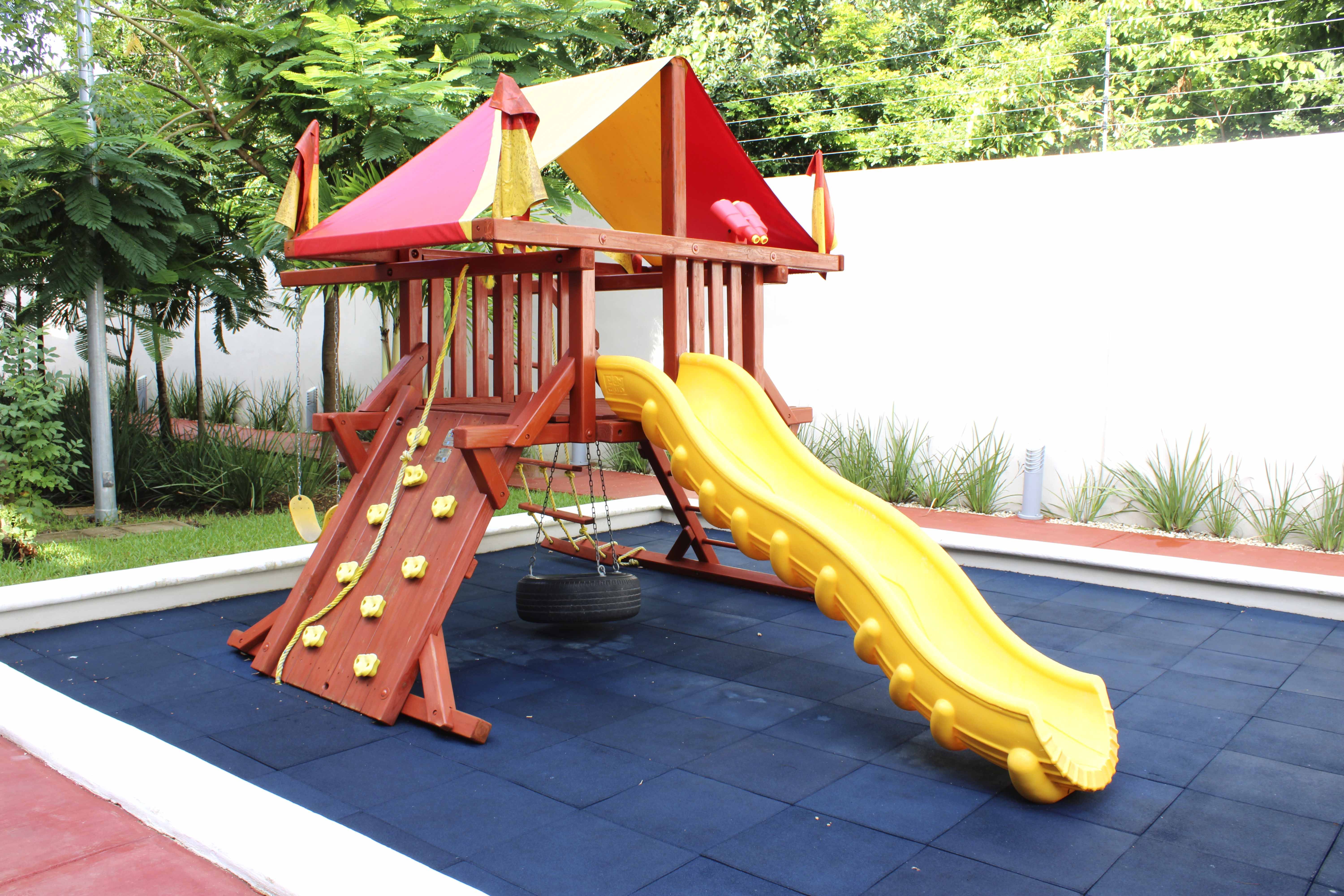 ? También encontrarás áreas diseñadas para los más pequeños, como una zona de juegos y una pista de jogging para mantenerte activo.