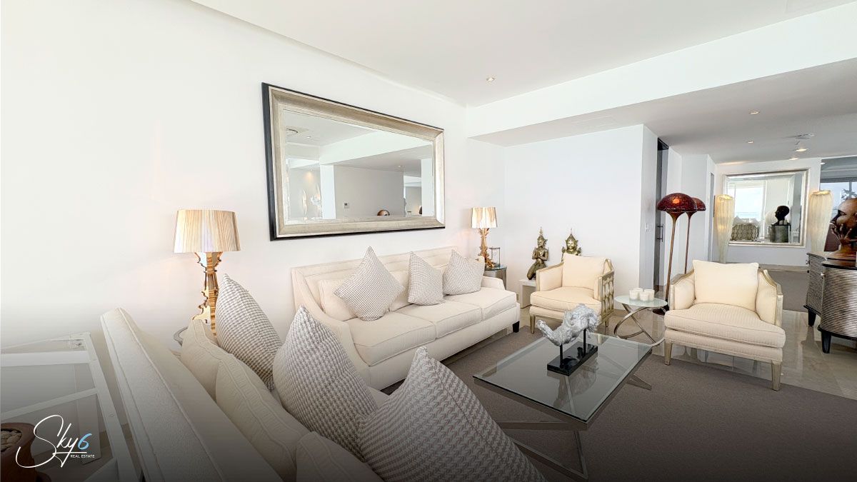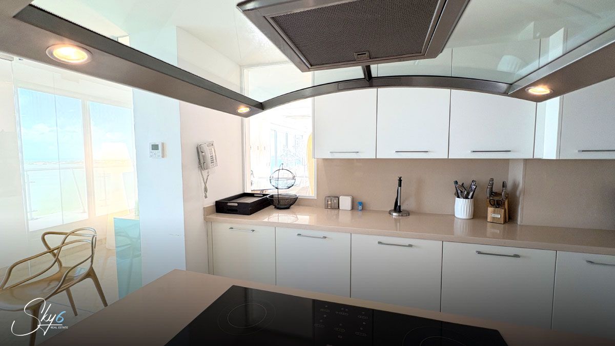 En cuanto al equipamiento, esta propiedad va mucho más allá de lo ordinario. Para empezar, cuenta con un jacuzzi privado en terraza, desde donde podrás disfrutar de impresionantes vistas panorámicas al mar. Además, dispone de un exclusivo baño de vapor, perfecto para relajarte después de un largo día. Por otro lado, el departamento incluye un cómodo estudio, ideal para quienes trabajan desde casa o necesitan un espacio privado de concentración, así como una acogedora sala de TV para los momentos de entretenimiento en familia.