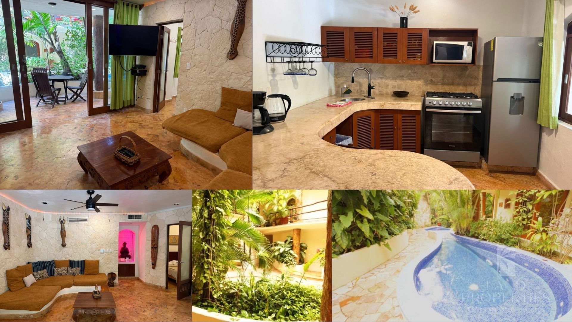 Este departamento se encuentra en un edificio de arquitectura Tropical rodeado de vegetación y con detalles que aportan un ambiente natural y acogedor. Super bien ubicado a sólo unos pasos de la Playa y Plaza Corazón en la 5ta Avenida de Playa del Carmen.