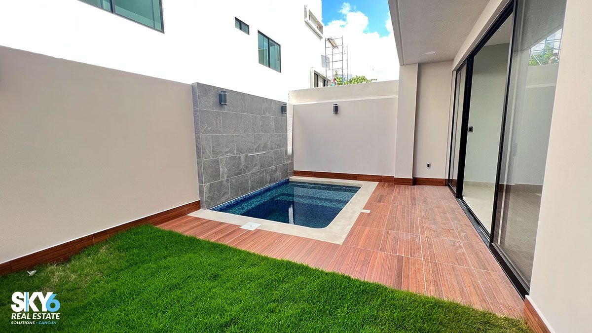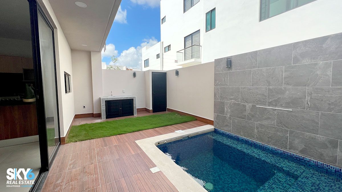 Ubicada estratégicamente en la avenida Huayacán km 4.5, Residencial Arbolada Cancún Fase 2, desarrollado por Grupo Cumbres, se distingue por sus amplias áreas verdes y seguridad integral. El terreno de 120.45 m2 y la construcción de 204.98 m2 son el lienzo perfecto para esta obra maestra arquitectónica.